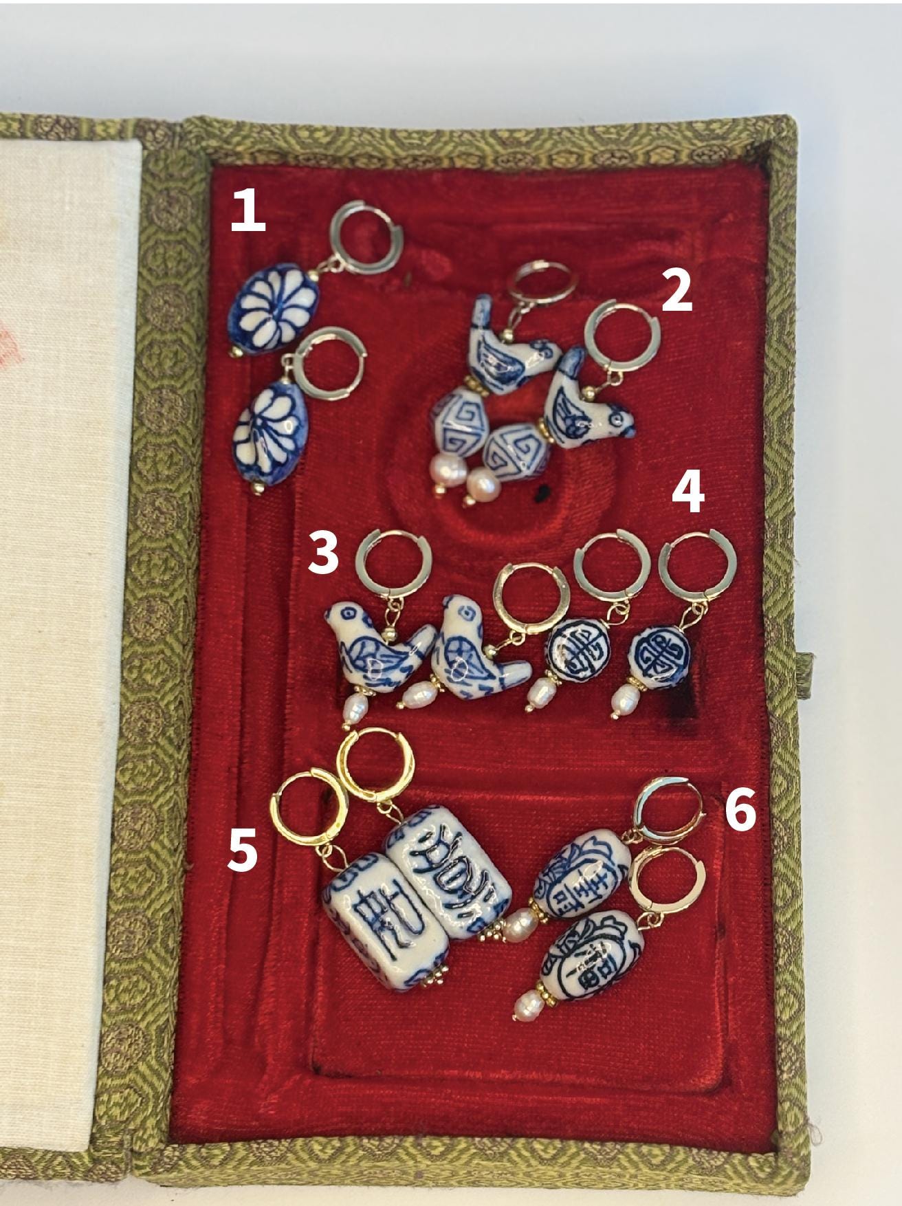 These handcrafted earrings are inspired by the timeless beauty of traditional Chinese blue-and-white porcelain (ιθ±η·). Each piece carries auspicious motifs β from birds symbolizing peace, to calligraphy patterns representing blessings and good fortune β making them more than just jewelry, but also tokens of luck and harmony.