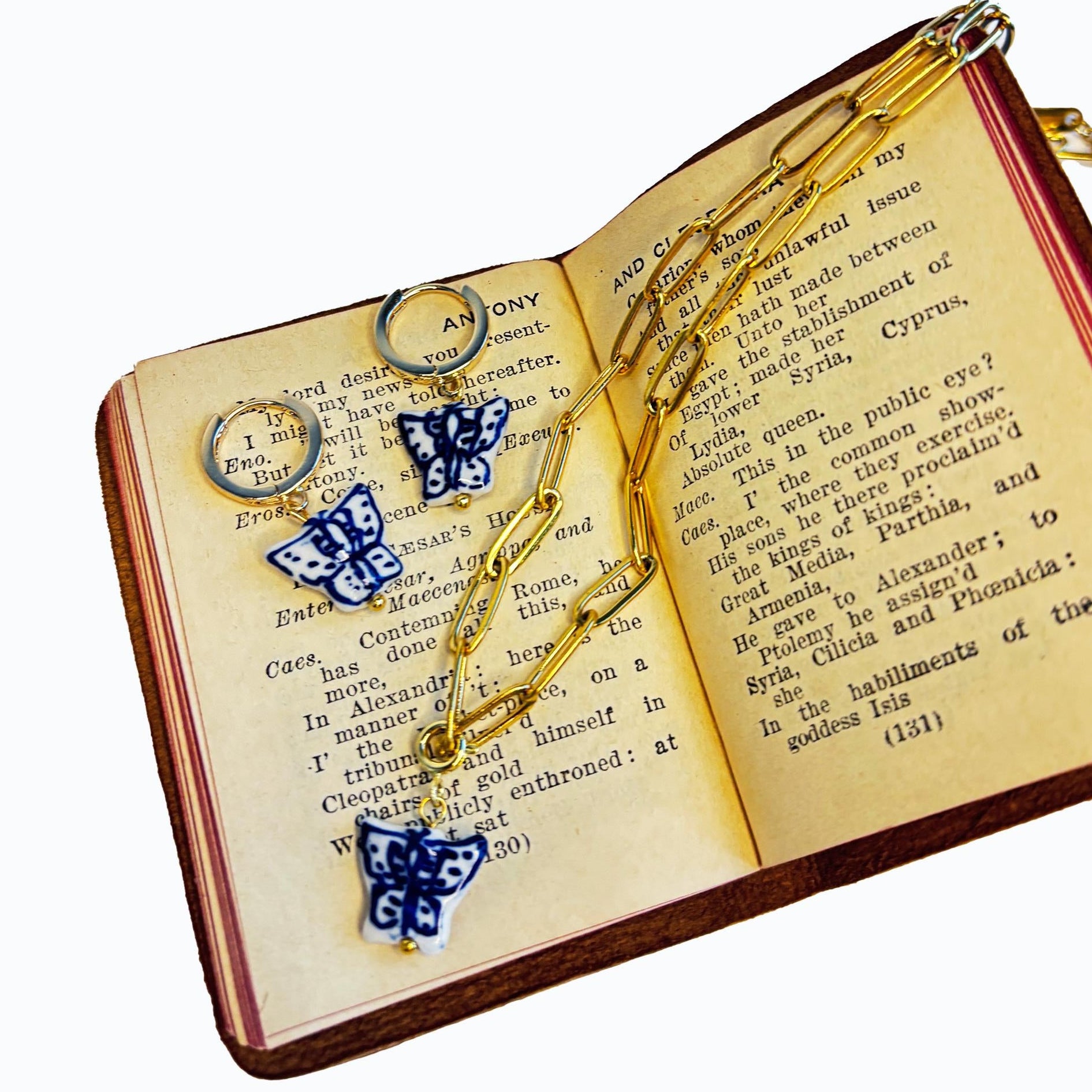 Each handmade charm carries unique brushstrokes, bringing graceful movement to both necklace and earrings.