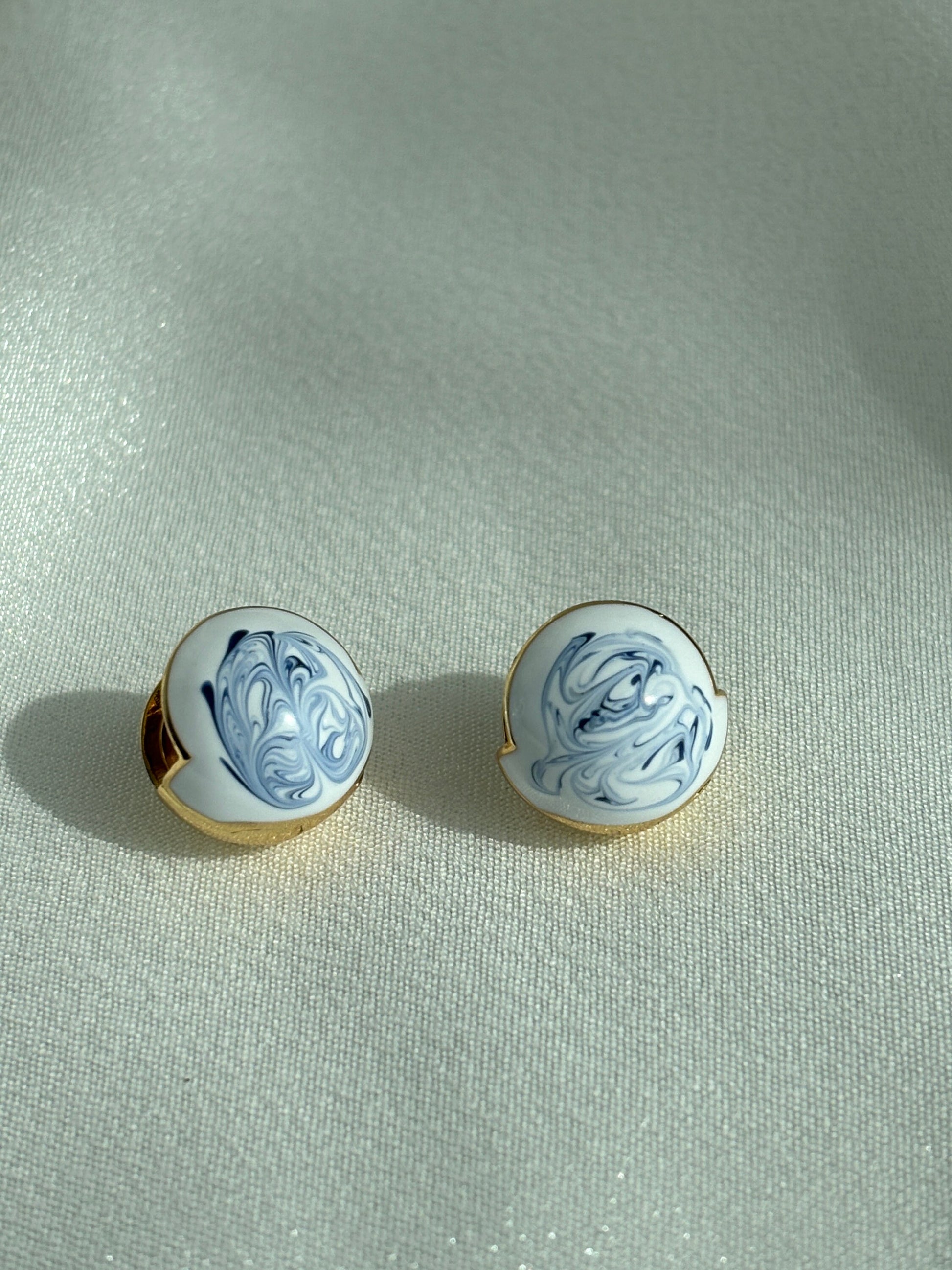 💗Elegant White Porcelain Disc Earrings with Blue Ink Design