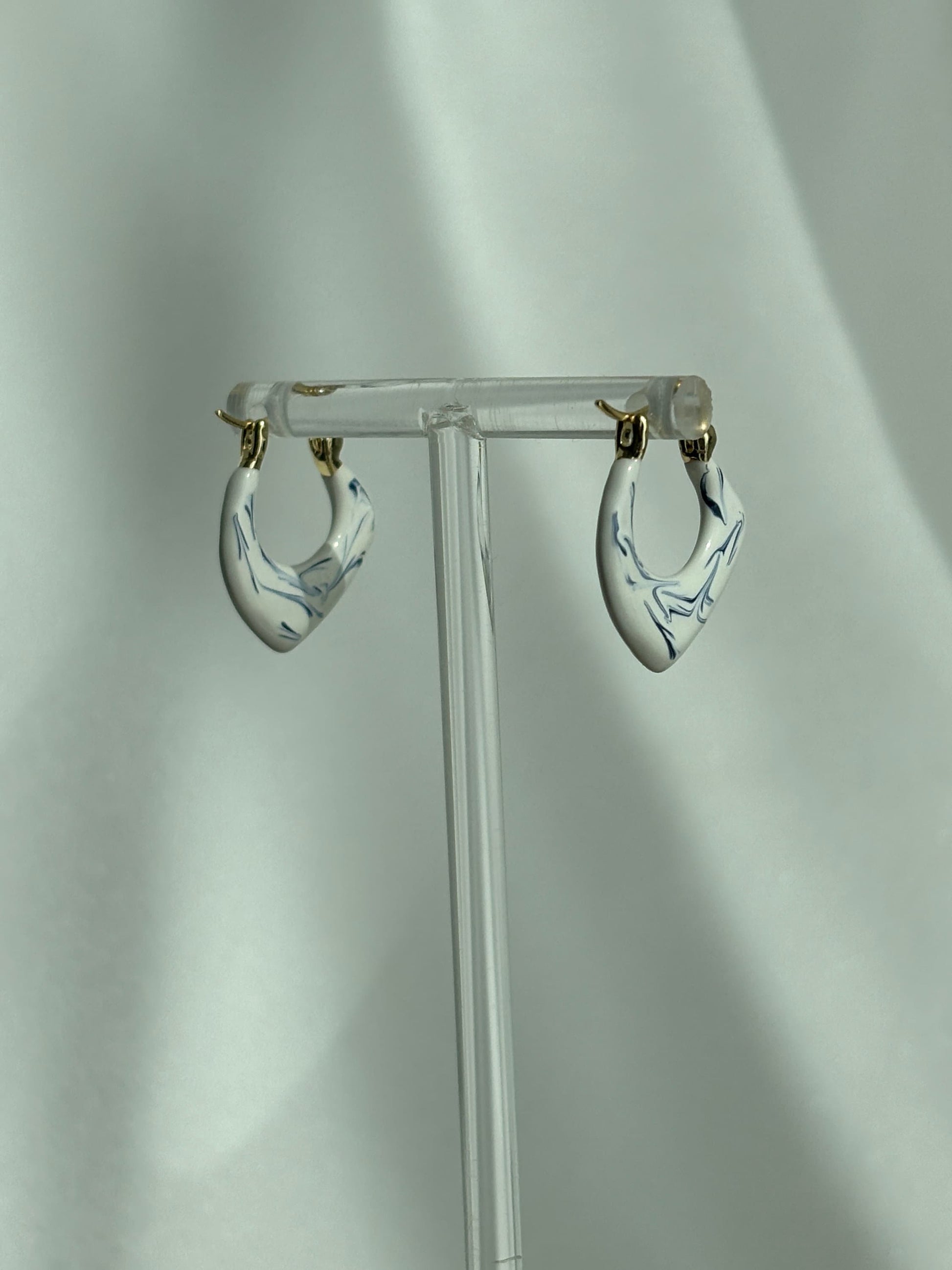 Enhanced with 18k gold accents, these earrings bridge the gap between contemporary style and classic artistry. The gold embellishments not only add a luxurious finish but also complement the blue ink, creating a sophisticated and eye-catching contrast.
