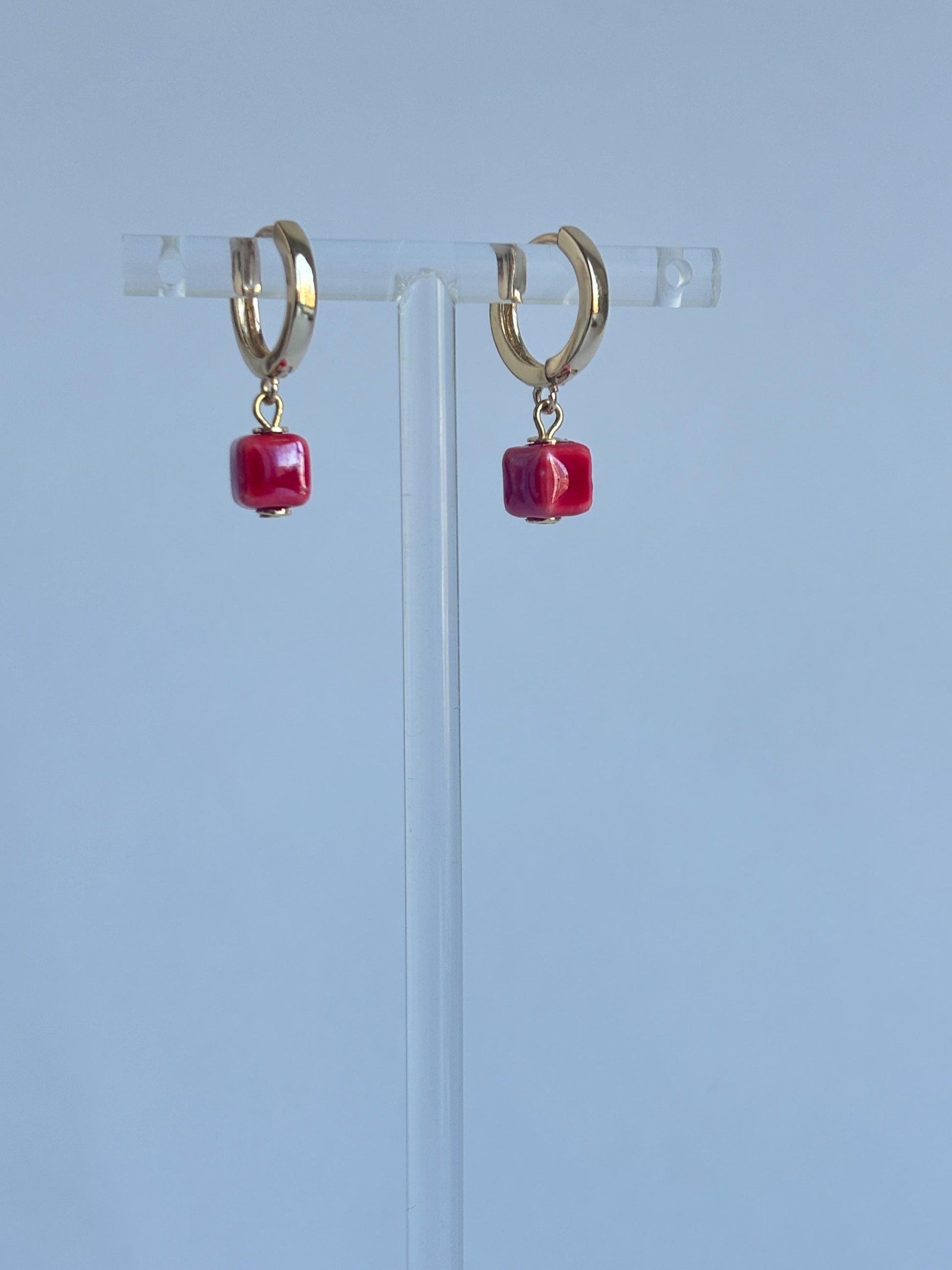 Red Square Porcelain Hoops | Handmade Ceramic Hoop Earrings | Minimalist Red Charm Jewelry, Everyday Elegant Gift